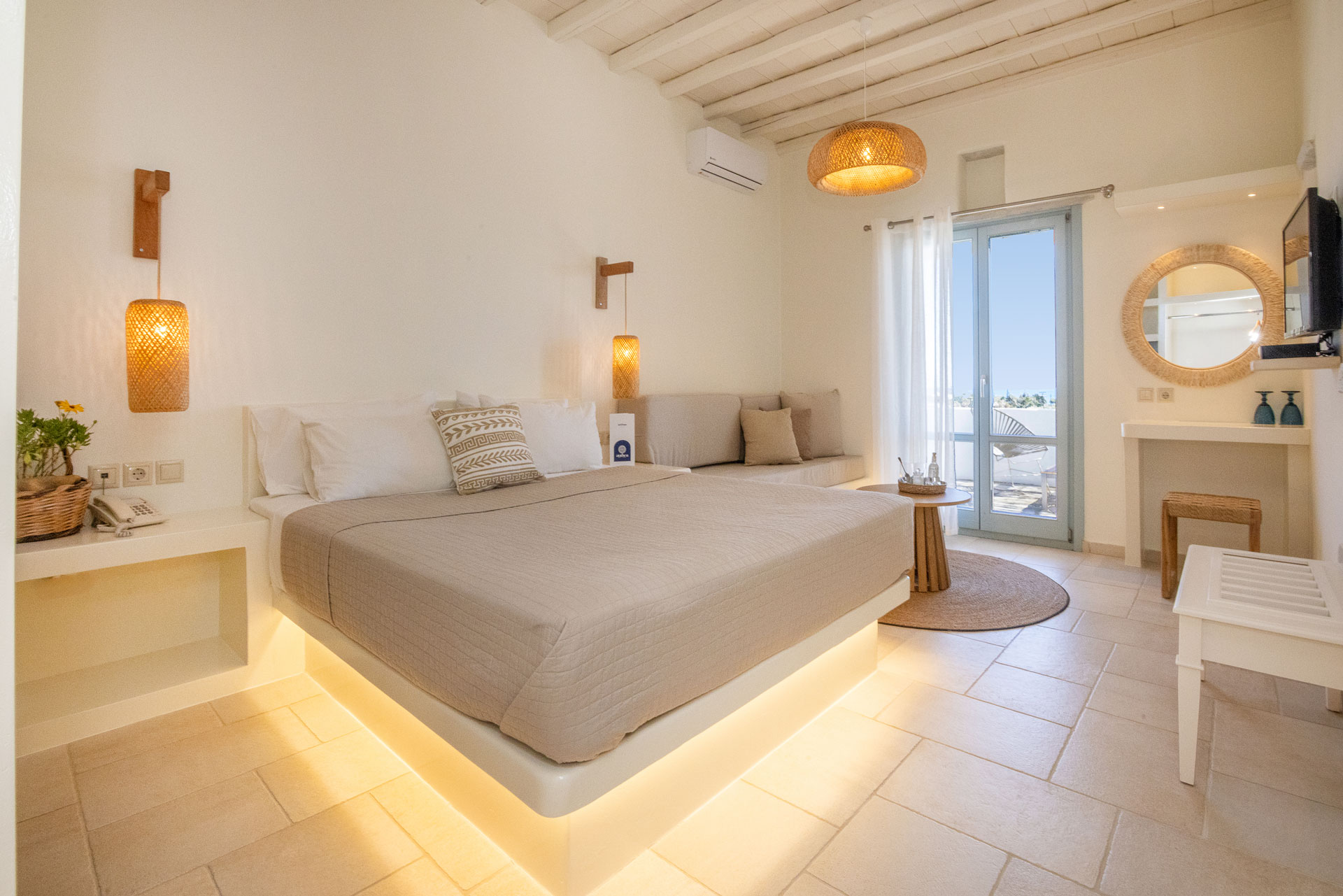 28 sq. meters. Double room with private terrace or balcony overlooking the Aegean Sea. (Max 2 pax). Rate notes Rate includes breakfast, welcome treat, personal concierge, transfer from/to port and all legal taxes. Payment policy Credit card guarantee is required to secure your reservation. The Hotel reserves the right to pre-authorise credit cards prior to…